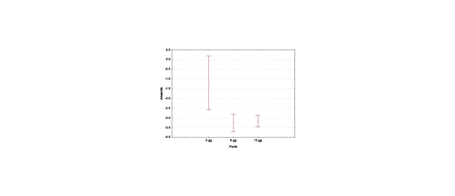 La rappresentazione mediante box-plot di questi valori in funzione del tempo di conservazione non evidenzia differenze significative ascrivibili alla conservazione stessa (Figura 11).