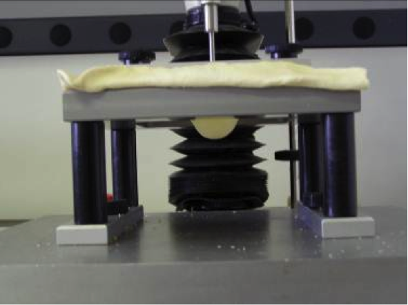 Figura 1 – Texture Analyzer con sonda HDP/TPB nel corso della analisi strutturale della pasta sfoglia
